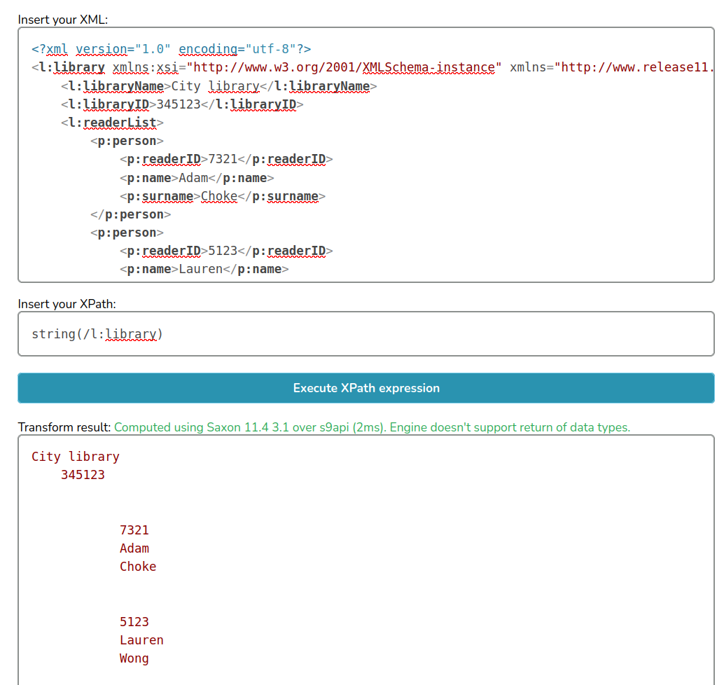 Result: String is returned, but it contains whole XML instead of selected fragment